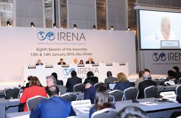 انطلقت اليوم أعمال الجمعية العمومية الثامنة للوكالة الدولية للطاقة المتجددة "آيرينا" في أبوظبي وتستمر يومين بمشاركة أكثر من 1100 ممثل حكومي من 153 بلداً ووزراء ومسؤولين.