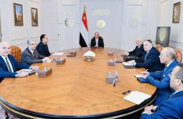 استقبل الرئيس المصري عبد الفتاح السيسي، اليوم السيد "ديميتروس كوبولوزيس" رئيس مجموعة شركات كوبولوزيس اليونانية للكهرباء، وذلك بحضور الدكتور مصطفى مدبولي رئيس مجلس الوزراء، والدكتور محمد شاكر وزير الكهرباء والطاقة المتجددة، وعدد من كبار مسئولي