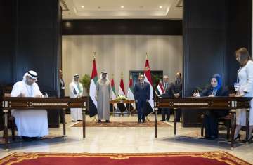شهد صاحب السمو الشيخ محمد بن زايد آل نهيان رئيس الإمارات، وفخامة عبدالفتاح السيسي رئيس جمهورية مصر العربية الشقيقة .. توقيع اتفاقية بين كل من شركة "انفينتي باور" المشتركة بين "مصدر" ــ الشركة الرائدة عالمياً في مجال الطاقة المتجددة ــ