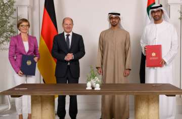 شهد صاحب السمو الشيخ محمد بن زايد آل نهيان رئيس الإمارات، ومعالي أولاف شولتس مستشار جمهورية ألمانيا الاتحادية اليوم مراسم توقيع اتفاقية شراكة استراتيجية جديدة في مجال تسريع أمن الطاقة والنمو الصناعي، تهدف إلى تسريع تنفيذ المشاريع ذات الاهتمام المشترك بين