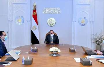 اجتمع اليوم الإثنين، الرئيس المصري، عبد الفتاح السيسي، مع الدكتور مصطفى مدبولي، رئيس مجلس الوزراء، والدكتور محمد شاكر وزير الكهرباء والطاقة المتجددة، والمهندس محمد يحيى زكي، رئيس الهيئة العامة للمنطقة الاقتصادية لقناة السويس".
